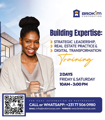 Join us for a Two-Day Intensive Staff Capacity-Building Program under the theme “Strategic Leadership, Real Estate Practice, Technology & Compliance Excellence.” The training will be held on Friday and Saturday, October 24–25, 2025 at the BroKim Corporation Office, Jallah Building, Perry Street & Camp Johnson Road Intersection. This program is designed to strengthen staff performance, enhance leadership skills, and promote innovation and regulatory compliance across all departments.